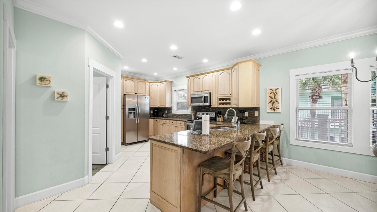 Families will enjoy the large living area and fully equipped kitchen along with the large decks on the 2nd & 3rd floor offer views of the gulf! This family friendly home sleeps up to 14 and enjoys a private community pool to which it shares with 9 homes.