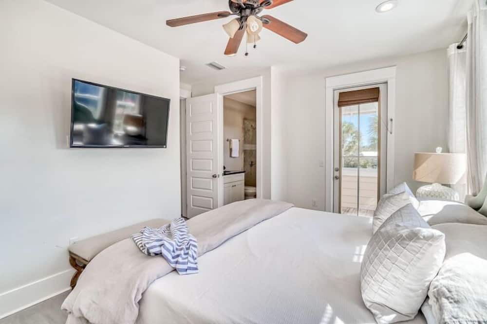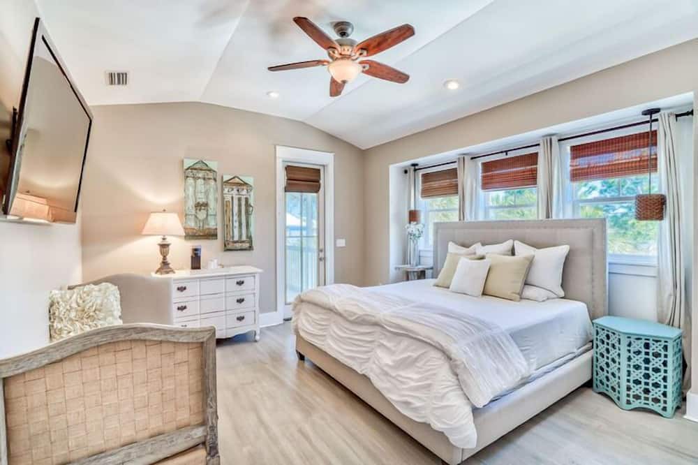 Welcome to Sand Dollar Retreat, our picture-perfect cottage located in the secluded Village of Sugar Beach! This home showcases southern charm with comfort and high quality combined. The first floor offers an open floor plan with a spacious family room and airy kitchen with stainless-steel appliances. The family room opens to the covered back porch, which is steps away from the community pool. The beach access is located two short blocks from the home across Highway 30A. The home offers four bedrooms; two king masters (one with a private balcony), one king guest bedroom, one queen guest bedroom, and an extra bunk area. This charming cottage is located within a short bike ride to all Seagrove Beach's hotspots such as Donut Hut, Perfect Pig, & Angelina's Pizza just to name a few.