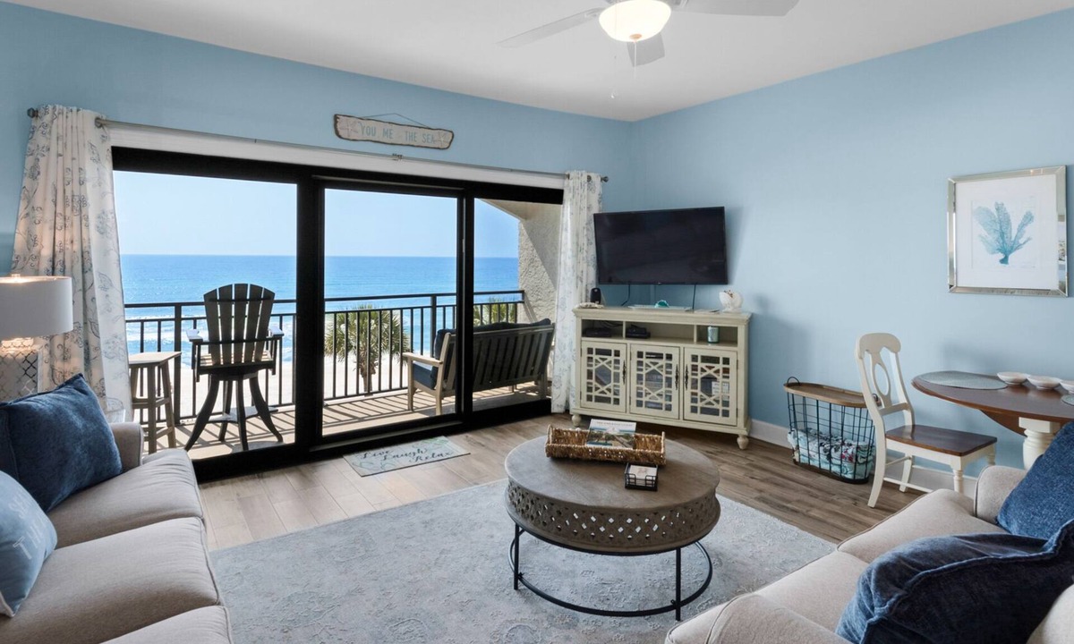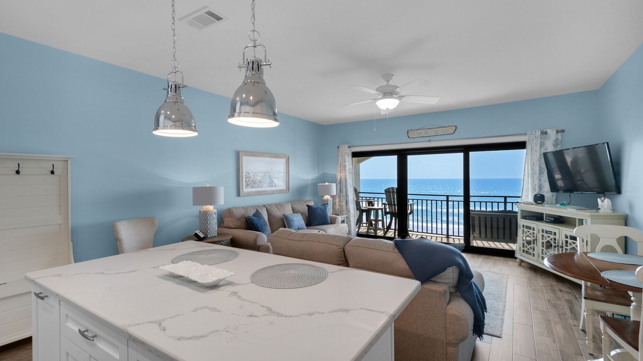 Enjoy your new home-away-from-home in this comfortable Gulf-front condo. This cozy 3rd floor unit boasts plenty of open living space with a modernized kitchen, providing ample space to prepare a family meal. The master bedroom includes a king bed, TV, and private bathroom with large shower. The kids will love the hallway bunks, and they'll have easy access to the modern and updated guest bathroom with tub/shower combination.