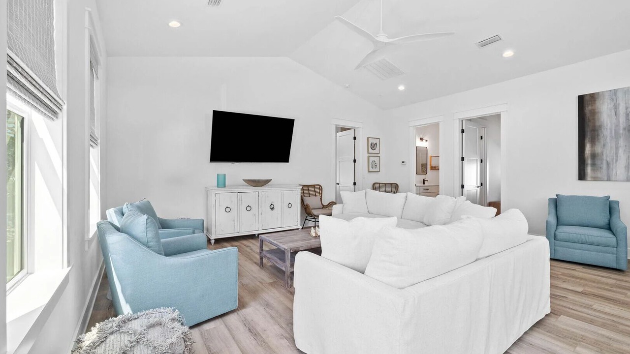 ABOUT THE HOME: Welcome to Juan Fine Day, a luxury multi-level beach home nestled just north of 30A in the heart of Seagrove known for its stunning beaches and charming coastal atmosphere! Perfect for large groups or families looking to enjoy coastal ambiance and luxury amenities. A light bright open space Juan Fine Day provides ample indoor and outdoor space for both relaxation and entertainment. Guests can explore the natural beauty of the coastline, take leisurely strolls along the shore, or simply bask in the tranquility of seaside living. With 4 bikes and a golf cart, 30A is your oyster so come explore Seagrove and the nearby coastal communities of Seaside, Alys, and Rosemary beaches!