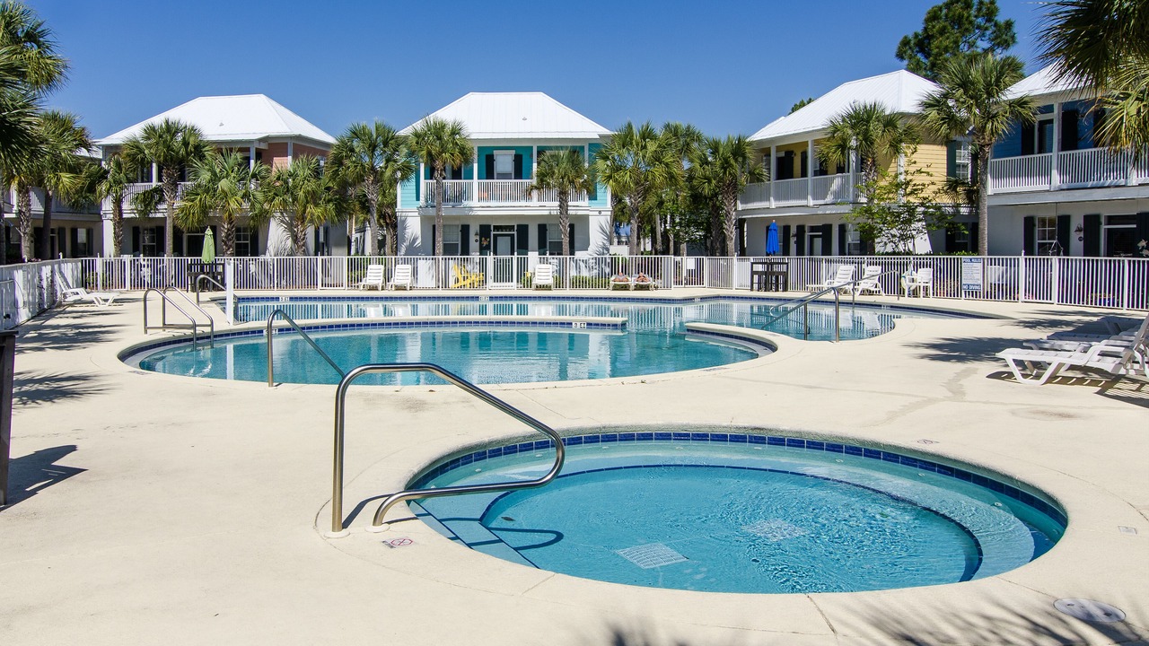 The Bungalows at Seagrove is a quaint neighborhood tucked away in the heart of Seagrove Beach, one of Scenic Highway 30A’s original beach towns. This single-family home community offers one and two bedroom, Old Florida styled homes complete with porches and balconies, lap-board siding, metal roofing, large exterior shutters and of course palm trees. Enjoy access to two community pools, separate children’s pool and hot tub, and lake views, all just steps from the Gulf of Mexico and beautiful scenic highway 30A. Bikes are always welcome in Seagrove Beach, where 17-miles of path along Highway 30A make for a better way to travel, especially when dozens of locally owned restaurants, shops and markets are nearby. Amenities such as golf, tennis, biking, boating, water sports & more are available locally at additional costs.