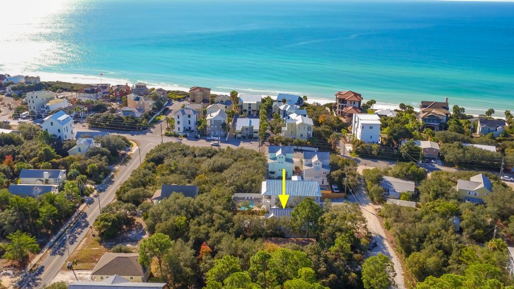 Latitude Adjustment – 40 N. Dothan Avenue – Seagrove Beach, FL Stay with Sunburst and get up to $280 in Beach Gear delivered to your vacation home! Latitude Adjustment is an open, airy pet-friendly home situated just a short walk across the street from the beach access. This property has 3 bedrooms and 3.5 bathrooms and sleeps 10 people. NEW bath added for the 2019 season! Pictures to come. You will be able to completely relax in the large, screened porch overlooking the private heated pool (fees apply for pool heating). A perfect setting for those beautiful Florida evenings, when you just wish to stay in and appreciate the tranquil setting. Take a dip in the private pool on those sunny days or lounge in one of the secluded outdoor seating areas. Ground Floor: This floor has laminate wood plank flooring in the common areas and tile floors in the bathrooms. Large open living room with high ceilings is outfitted with two sofas, 2 plush side chairs, coffee table, bench, side tables and 2 lamps, 52” LED SmarTV, Blu-ray, Sonos stereo system and sofa table. Small selection of movies and puzzles for your enjoyment. Wireless internet. The dining table seats up to eight when all chairs are pulled in. Open kitchen has quartz countertops, ample cabinets, a pantry and breakfast bar with 2 bar stools. The appliances include a side by side fridge with door ice / water dispenser, dishwasher, glass top range, microwave and double sink. Laundry room is in closet off kitchen and has stackable washer / dryer. French doors off the kitchen lead to the huge screened porch which overlooks the pool. King master bedroom has 2 bedside tables, 2 lamps, chaise lounge, wall mounted LCD TV, large closet with chest of drawers and a private bath with vanity sink, walk-in shower and second sink in the water closet. Convenient powder room off living area. Second Floor: Entire second floor has new laminate wood flooring. Large queen bedroom has 2 bedside tables, 2 lamps, sofa with lounger section and queen sleeper, lamp, wall mounted LCD TV, DVD player, ottoman, dressing area with chest of drawers and sink – very convenient when the hall bath is occupied. Hall bath has a vanity sink and a tub / shower. French door off the queen bedroom leads to a private balcony outfitted with two chairs overlooking the pool area below. Bunk bedroom is open (no door) and has 2 built-in bunks (4 twins each with its own reading light), bench seating area, hooks on wall for clothing and wet suits and a chest of drawers. Large collection of children’s books. Outside: Large screened porch overlooking the pool area. Like a second living room, this porch has a love seat, 2 cushioned side chairs, rocker and coffee table. There is also an outdoor dining table with 4 chairs and a bench. The 9x21 private heated pool is in secluded setting surrounded by pavers. (Fees apply for pool heating.) Furnishings poolside include 2 loungers and 2 Adirondacks. The backyard also includes a fire pit--great for outdoor relaxing in the evenings. Gas grill. Cold outside shower at pool entrance for beach cleanup. Adirondacks in the front of home offer a cool place to read in the shade. Parking for about 3 cars end to end in the driveway and another on the parking pad at the street. The owner provides 3 bikes for your enjoyment. Sunburst Beach Vacations offers accommodations that include Gulf front beach homes, condominiums and Gulf view villas with private pools. We specialize within several unique beach communities along Scenic 30A like Seaside, Seagrove Beach, Grayton Beach, WaterColor, WaterSound and Rosemary Beach. We are a small, locally-owned company with intimate knowledge of our area, and we can provide professional, friendly advice to create the perfect beach vacation to fit your needs. We look forward to working with you…please give us a call today! IMPORTANT NOTE: Regarding pricing, a cleaning and processing fee, a $69 Vacation Rental Damage Plan Fee and tax will be added to ALL rates. Travel Insurance and pool heating are optional and can be added at Guest's choosing.