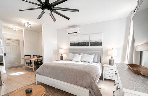 Recently renovated studio that is located in the heart of Seacrest Beach FL. This condo nestled between Rosemary and Alys Beach is everything you need to relax and enjoy all of the wonderful aspects of 30A. King Size bed with casper mattress, along with fresh sheets, 65" TV with streaming capabilities. Enjoy hanging out on our comfortable sofa that can extend into a queen size pull out. Beach access is a short walk or tram ride away (Seasonal). Restaurants, shops, & bike rentals steps away.