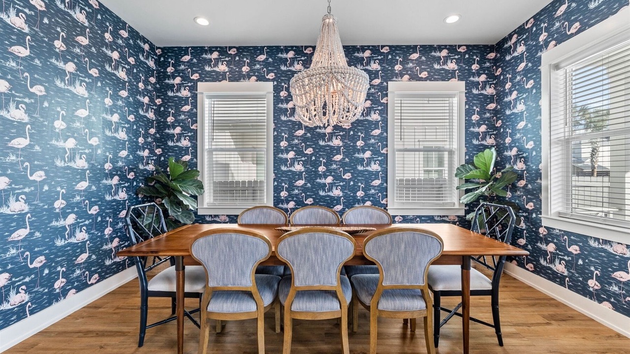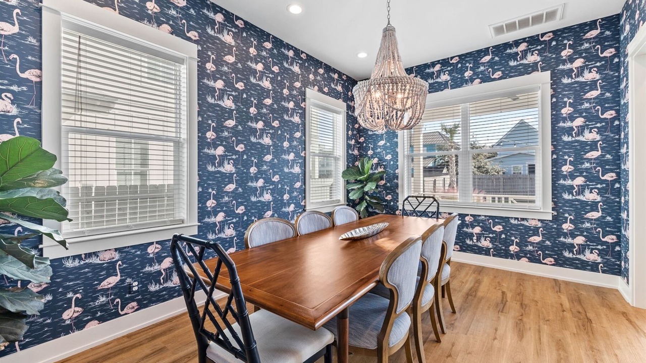 Inspired by timeless Old Florida charm, this gorgeous home features tons of natural lighting. Each room stands out with its own distinct look- complete with designer finishes and unique wallpaper in each bathroom!